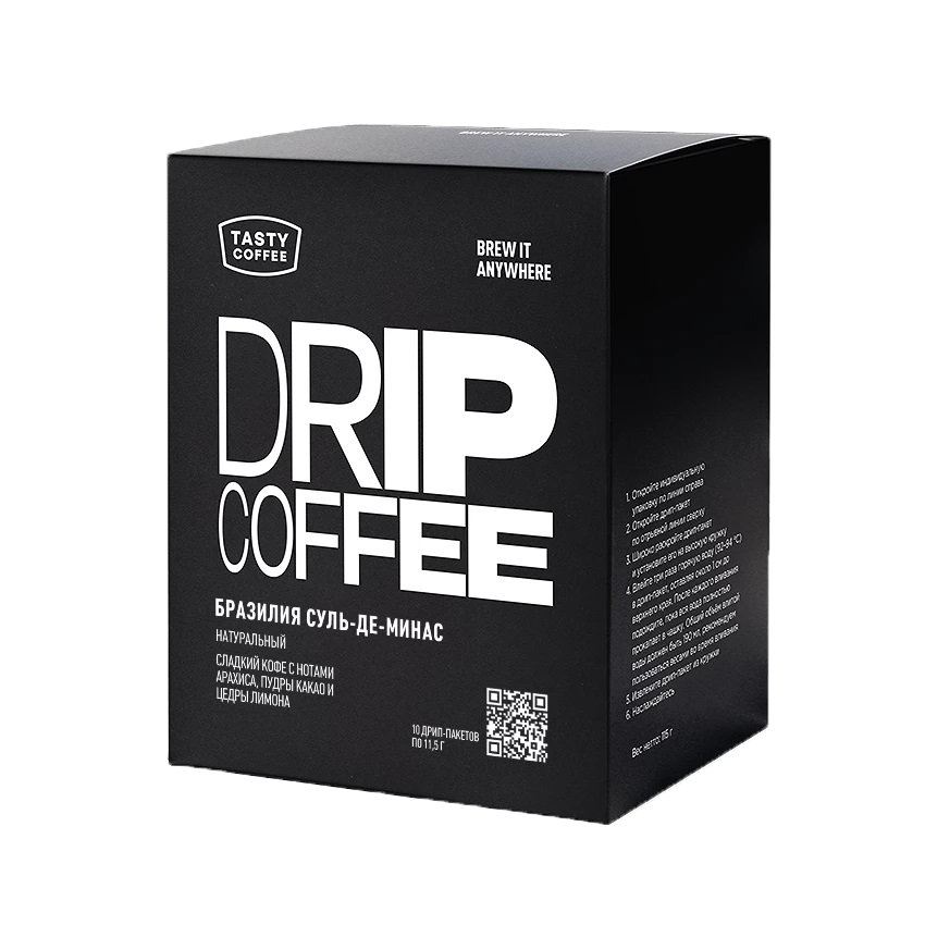 Главная / Продукты / Чай, какао, кофе / Дрип пакеты кофе "Бразилия Суль-де-Минас" Tasty Coffee