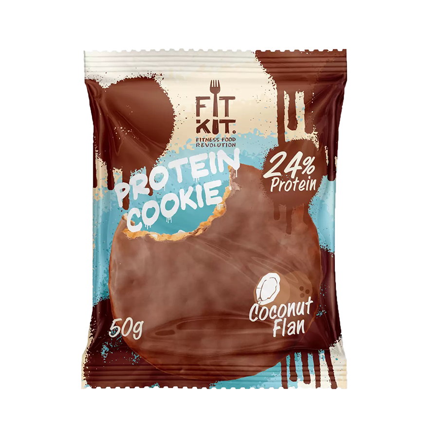 Главная / Продукты / Здоровый перекус / Протеиновое печенье глазированное "Кокосовый флан" FitKit